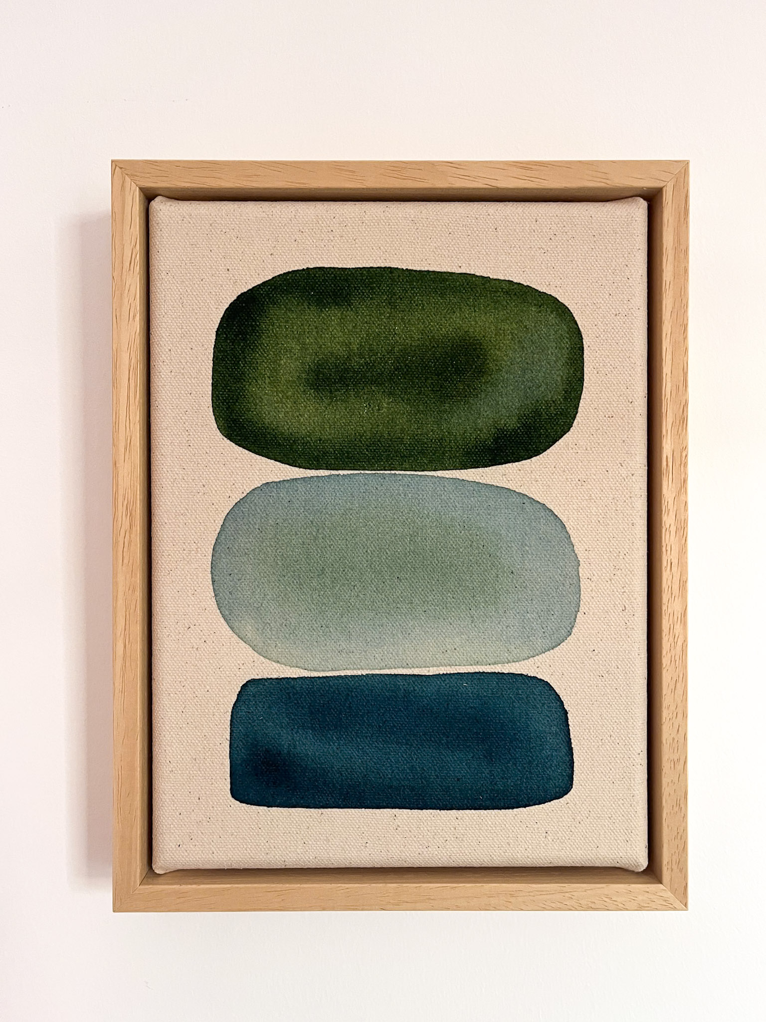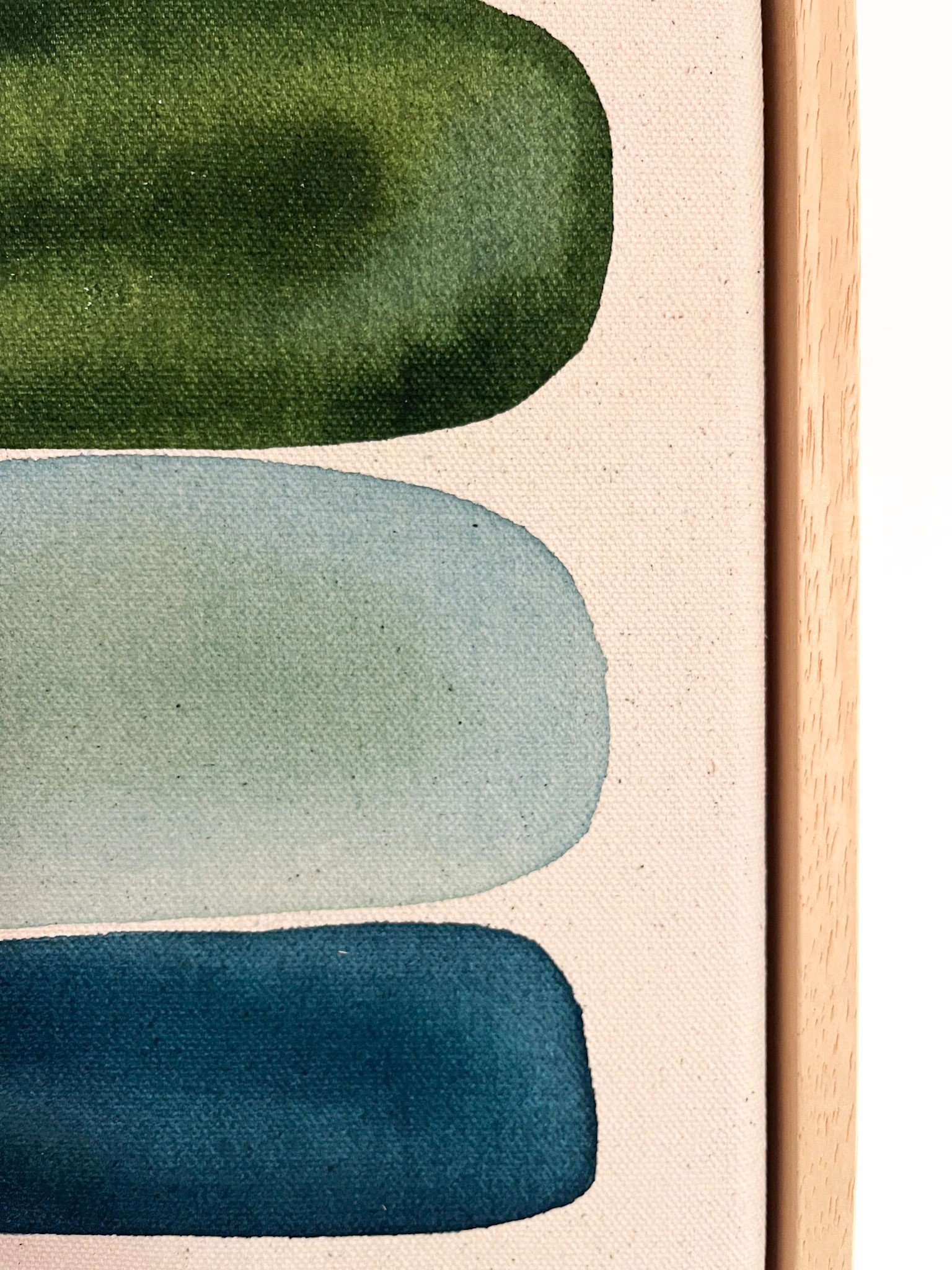 Through layered washes of acrylic and ink on raw cotton canvas, color and form merge like memories resurfacing. Transparent layers reveal traces of time and gesture, inviting the viewer to pause and reconnect with a sense of calm presence.