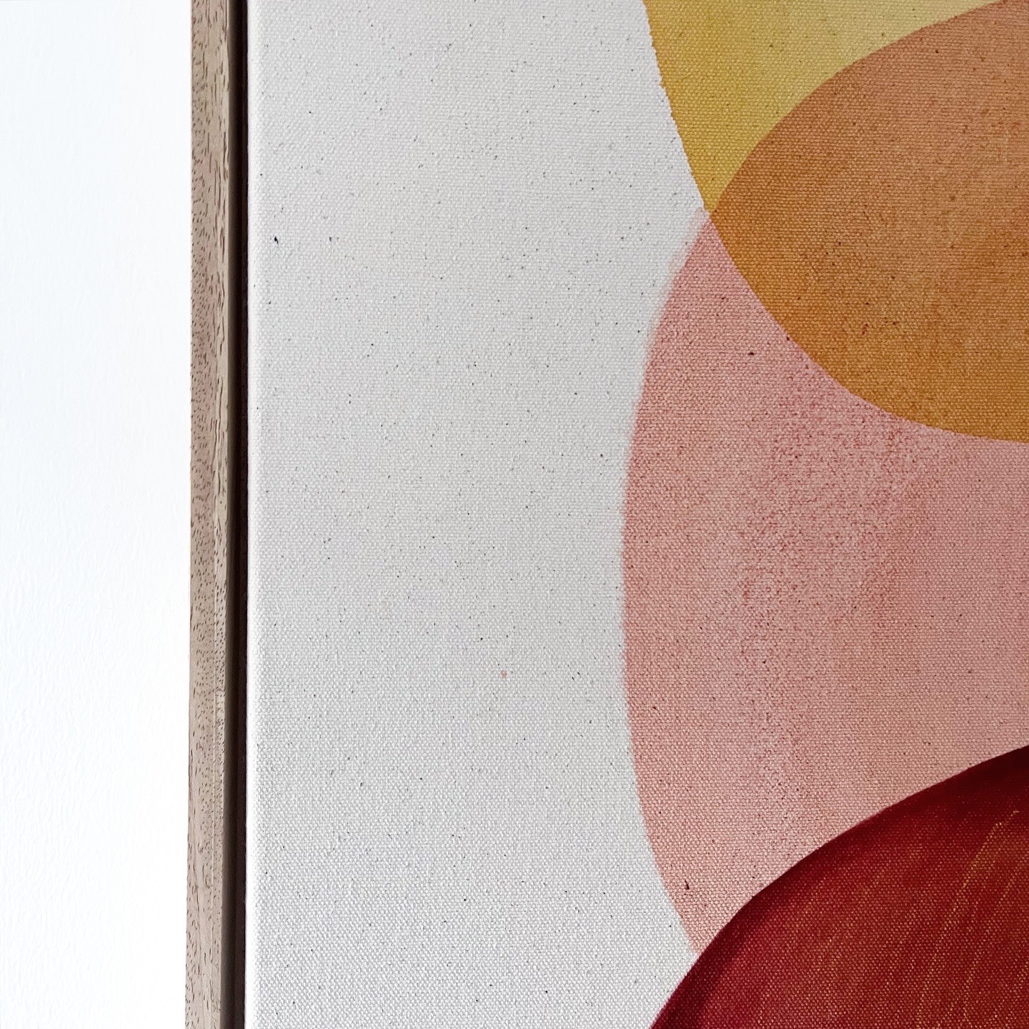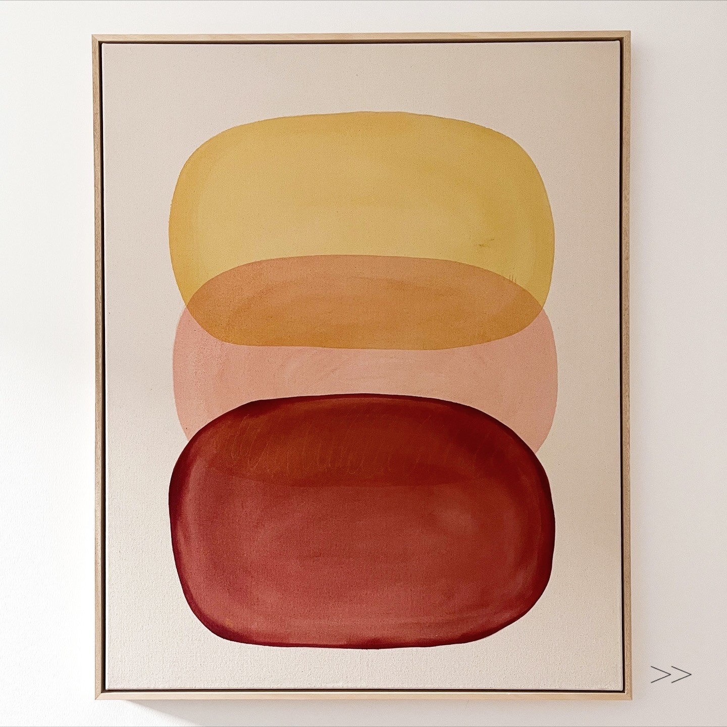 Through layered washes of acrylic and ink on raw cotton canvas, color and form merge like memories resurfacing. Transparent layers reveal traces of time and gesture, inviting the viewer to pause and reconnect with a sense of calm presence.